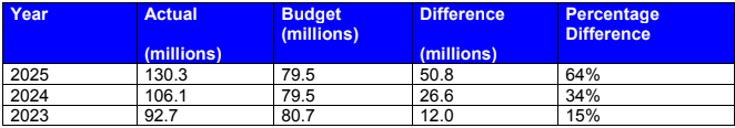 * A performance that exceeded the government's 2025 budget projection of CI$79.5 million by